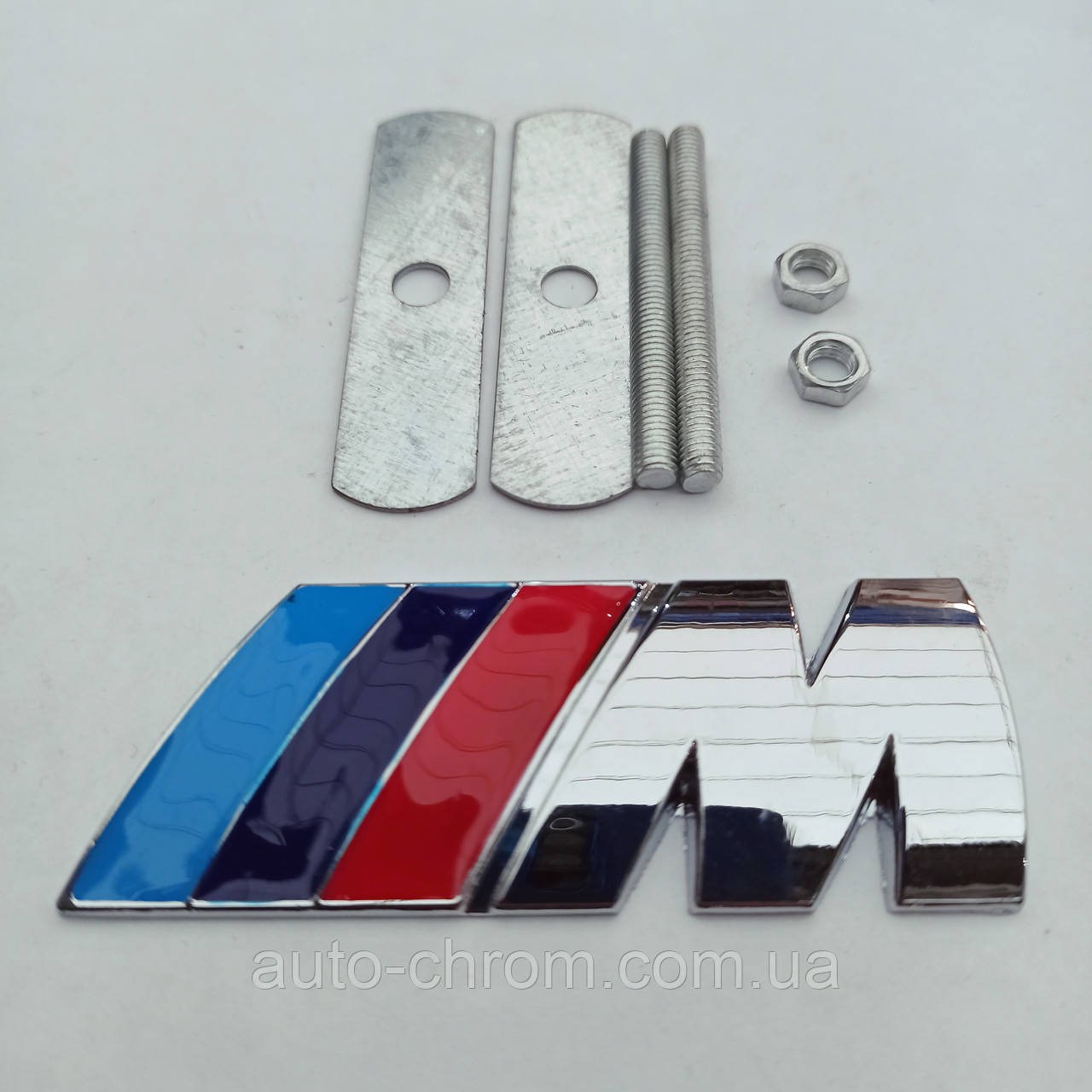 Металева емблема M для автомобілів BMW встановлюється в радіаторні грати на спеціальне кріплення ( кріплення в комплекті ) .